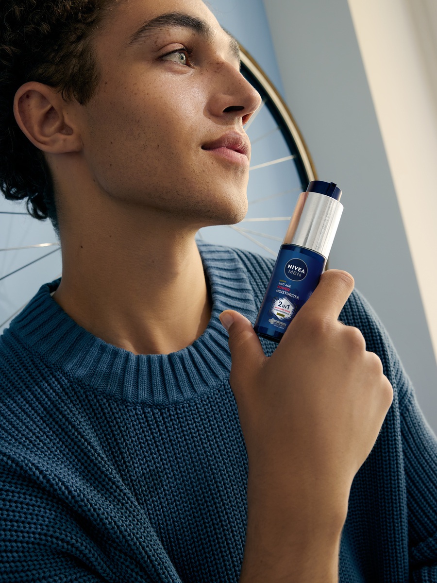 Vlažilna krema za obraz Anti-Age Hyaluron SPF 15 NIVEA Men z hialuronsko kislino, pro-retinolom in SPF 15 je zasnovana za nego moške kože za zdrav in mladosten videz.