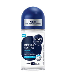 Antiperspirant NIVEA Derma Control Defend roll-on s čistim hialuronom in provitaminom B5 nudi 72 ur zanesljive zaščite pred potenjem in neprijetnimi vonji. Ob tem kožo ščiti pred draženjem zaradi britja.