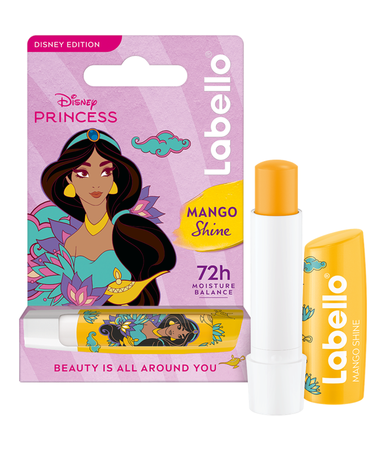 Balzam za ustnice Labello Mango Shine v omejeni izdaji v prikupni embalaži s princeso Jasmin globinsko neguje ustnice in razvaja čute z aromo sočnega manga ter zagotavlja do 72 ur vlaženja. Formula s ceramidi in kolagenskim ojačevalcem krepi naravno zaščitno bariero kože.