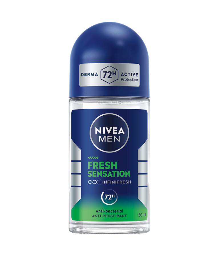 Dezodorant antiperspirant NIVEA MEN Fresh Sensation roll-on zagotavlja 72 ur zaščite pred potenjem. Edinstvena formula INFINIFRESH aktivno deluje proti bakterijam, ki povzročajo neprijeten vonj.