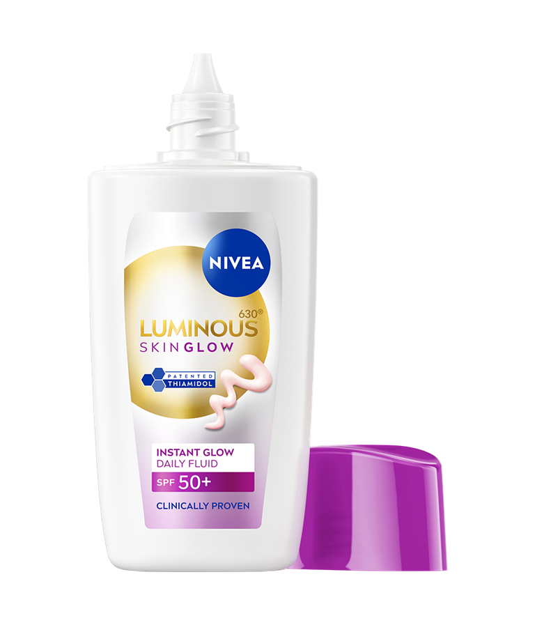 Izjemno lahki dnevni fluid Luminous630 Skin Glow ZF 50+ z učinkom uravnavanja sebuma poskrbi za enakomeren sijaj kože in preprečuje nastanek temnih madežev zaradi sonca. S patentirano sestavino Thiamidol®, niacinamidom in zelo visokim zaščitnim faktorjem.