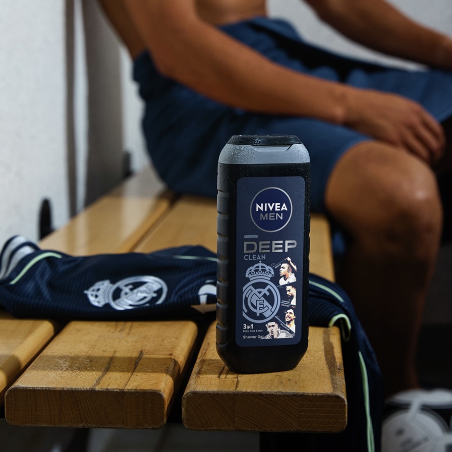 Gel za tuširanje NIVEA MEN Deep v omejeni izdaji je namenjen moškim, ki imajo radi občutek čiste, negovane in osvežene kože in las. Njegova edinstvena formula, obogatena z naravno mikrofino glino vpije nečistoče in temeljito očisti kožo. Učinkovit, a nežen gel z možatim in toplim lesnim vonjem se pri nanosu pretvori v peno, ki koži daje občutek globinske nege in energijske svežine. Gel za tuširanje smo ustvarili z mislijo na naravo - formula je namreč 99 % biorazgradljiva* in brez mikroplastike.