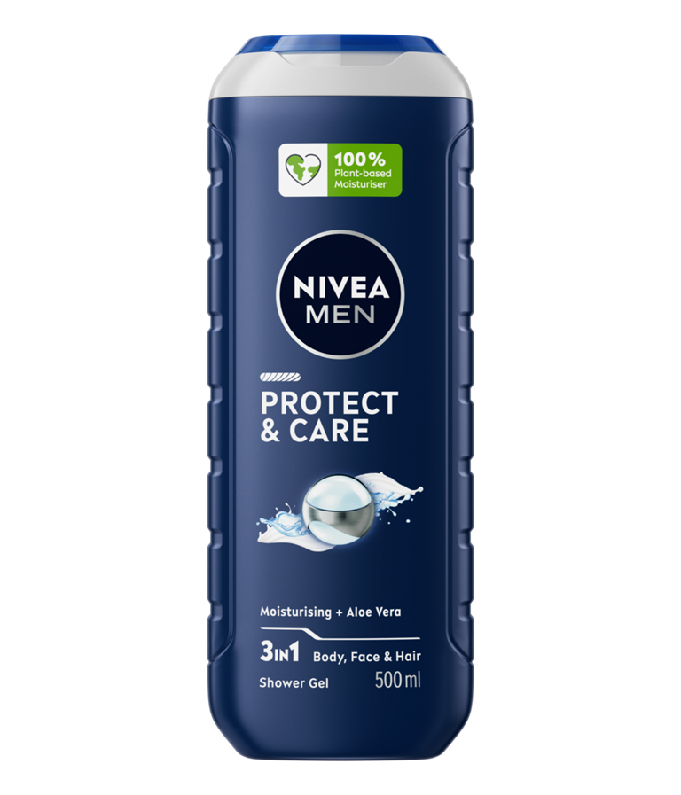Gel za tuširanje NIVEA MEN Protect & Care za moške, ki si želijo čist in navlažen občutek kože takoj po tuširanju.