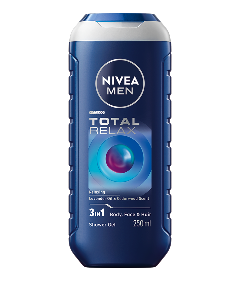 Gel za tuširanje NIVEA MEN Total Relax z oljem sivke in lesnim vonjem zagotavlja globinsko sprostitev in čiščenje kože. Biorazgradljiva formula je popolna izbira za nego telesa, obraza in las.