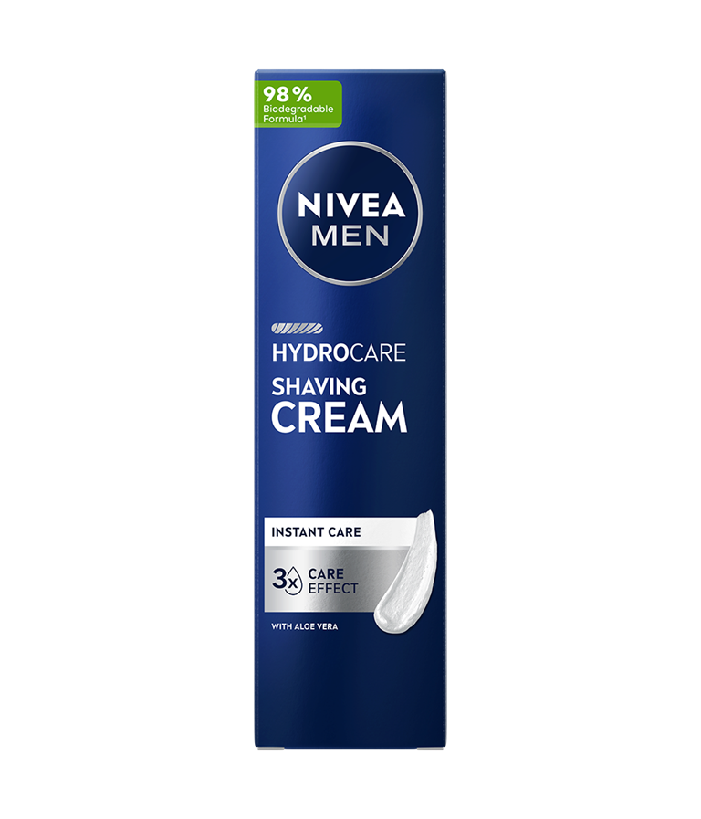 Krema za britje NIVEA Men Hydrocare omogoča gladko drsenje britvice in udobno britje z občutkom navlažene kože.