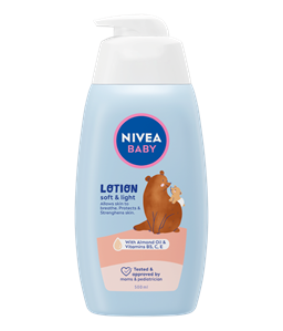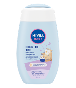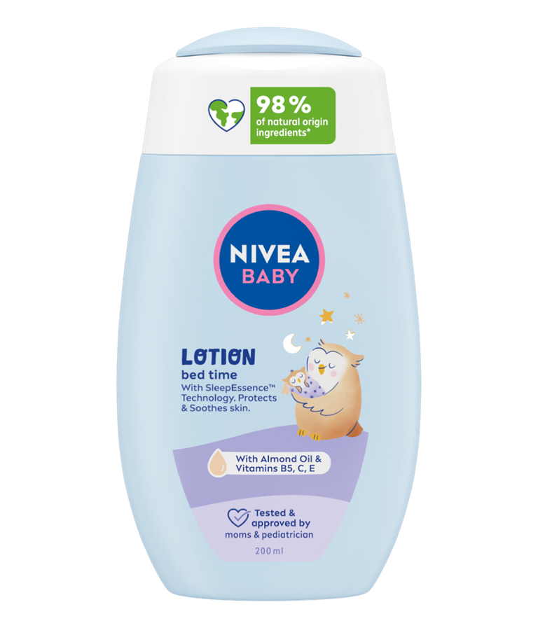 Losjon NIVEA BABY Bed Time neguje, pomirja in ščiti kožo vašega dojenčka. Formula s tehnologijo SleepEssence™ pomaga pomiriti in sprostiti otroka ter s tem pripomore k boljšemu spancu.