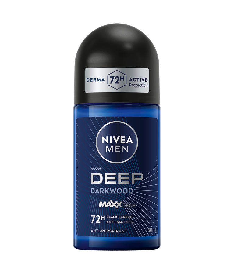Dezodorant antiperspirant NIVEA MEN Deep roll-on z možatim vonjem po lesu, zagotavlja 72-urno zaščito pred znojenjem. S formulo MAXXTECH in ogljem za občutek suhe in čiste kože.