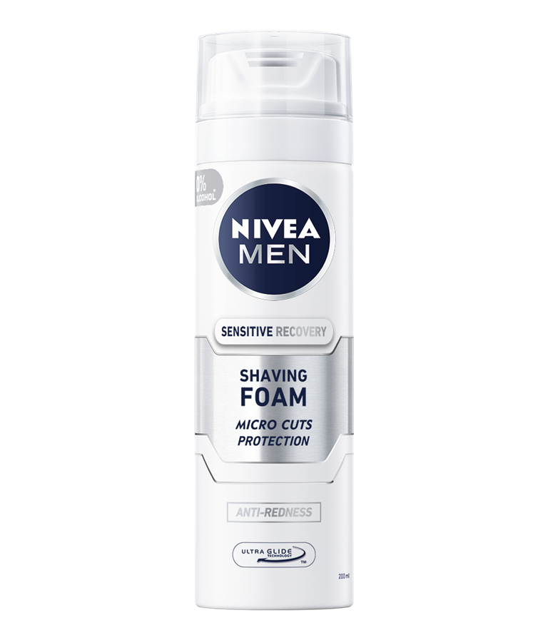 Obnovitvena pena za britje za občutljivo moško kožo ščiti kožo pred draženjem in ne povzroča skelenja.