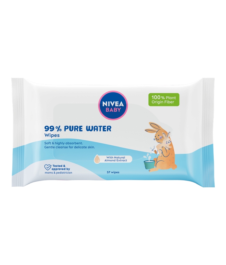Robčki NIVEA BABY 99 % Pure Water za dojenčke so večnamenski robčki za čiščenje od glave do pet. Hipoalergenska formula nežno očisti občutljivo dojenčkovo kožo in pomaga preprečiti draženje.
