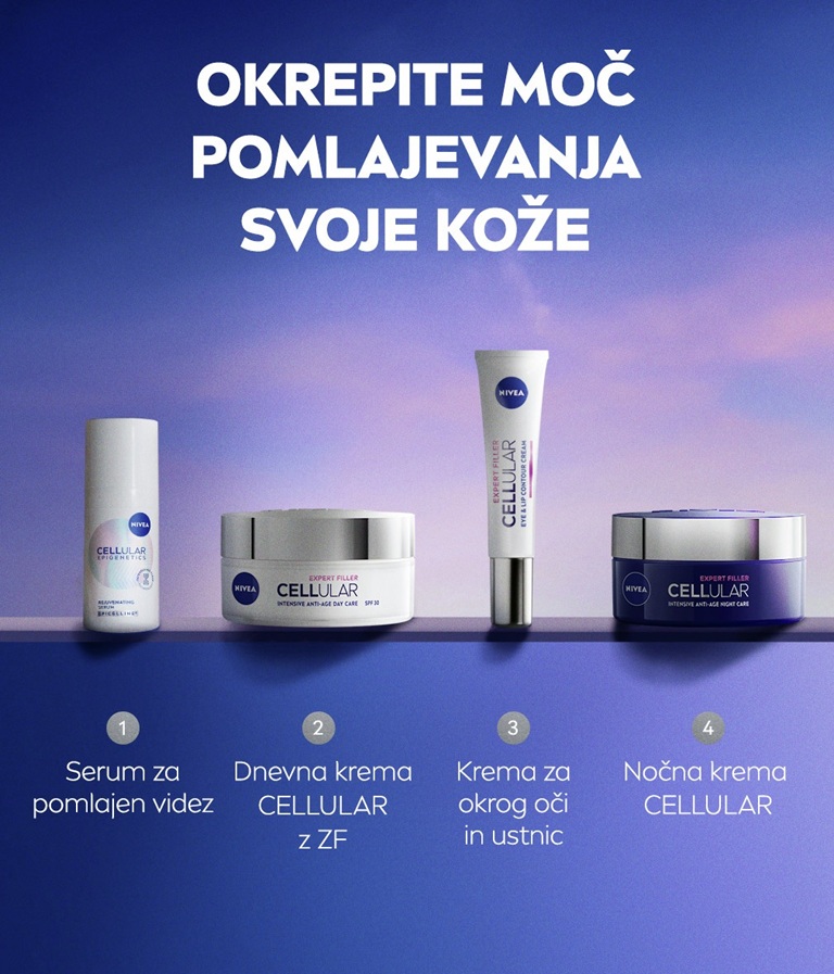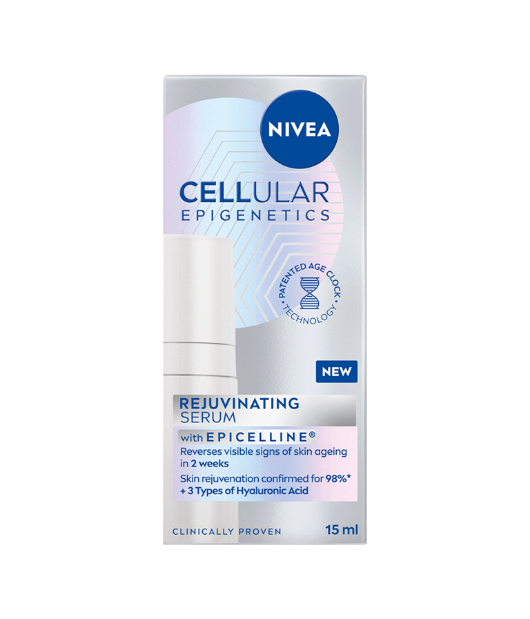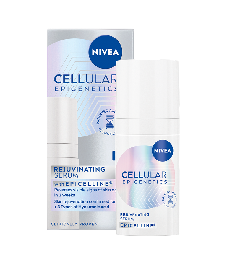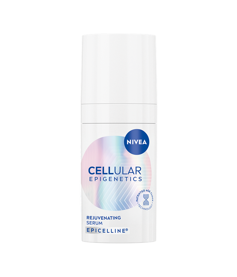 Doživite revolucijo v pomlajevanju kože s serumom NIVEA Cellular Epigenetics za pomlajen videz. Z epigenetsko anti-age sestavino Epicelline®, ki z znanstveno dokazano patentirano tehnologijo Age Clock pomladi kožo v 2 tednih.*